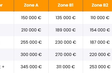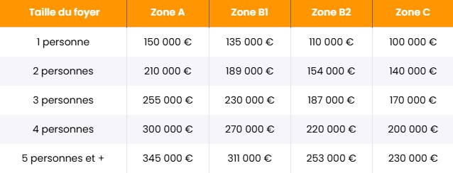 Ce plafond varie selon la zone géographique du logement (A, B1, B2 ou C) et le nombre de personnes destinées à y habiter. Il est destiné à cibler les foyers modestes ou intermédiaires, en évitant que le PTZ finance des acquisitions de biens trop élevés.